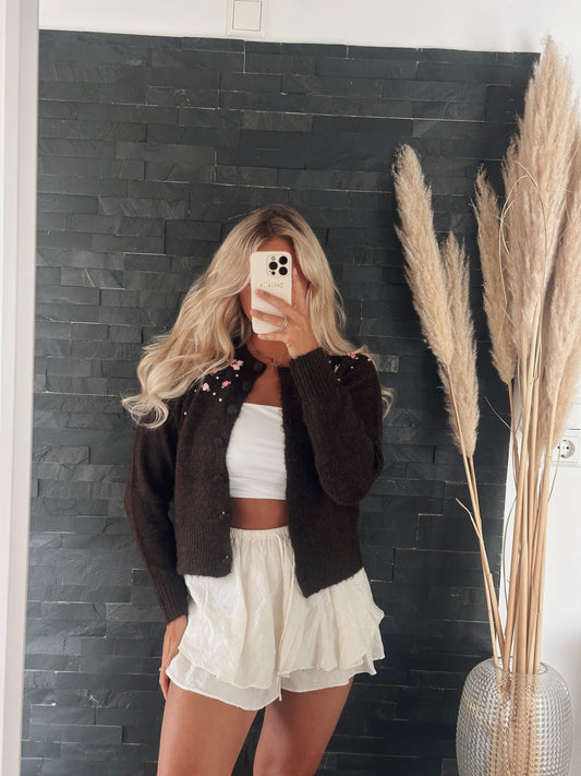 Sold outCARDIGAN PEARL BLOSSOM SCHOKO