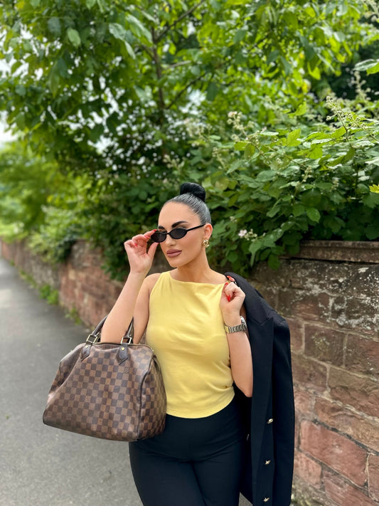 BLUSE CROP GELB CORSAGE