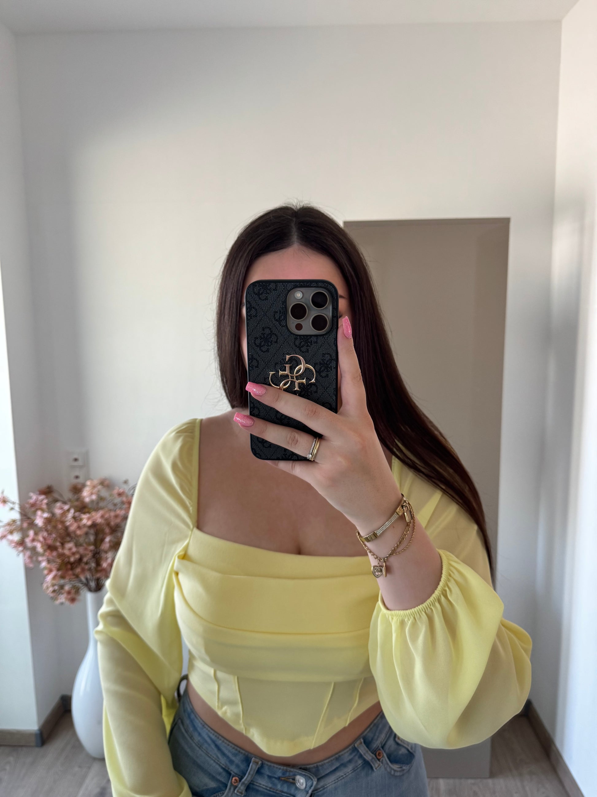 Entdecke unsere elegante Cropped Bluse in leuchtendem Gelb! Diese Bluse verfügt über eingenähte Cups, sowie leichte Corsagendetails, die deinem Look das gewisse Etwas verleihen.