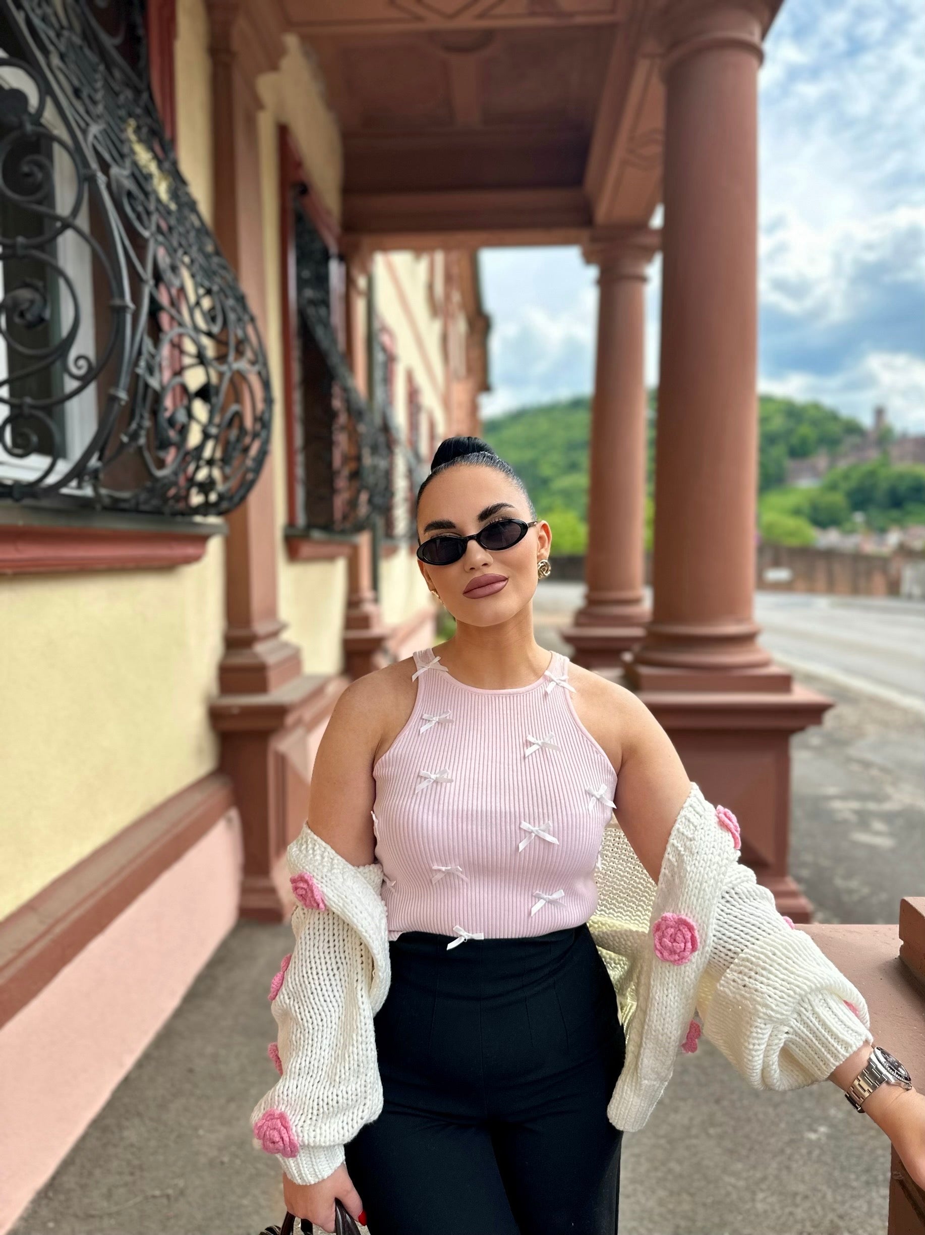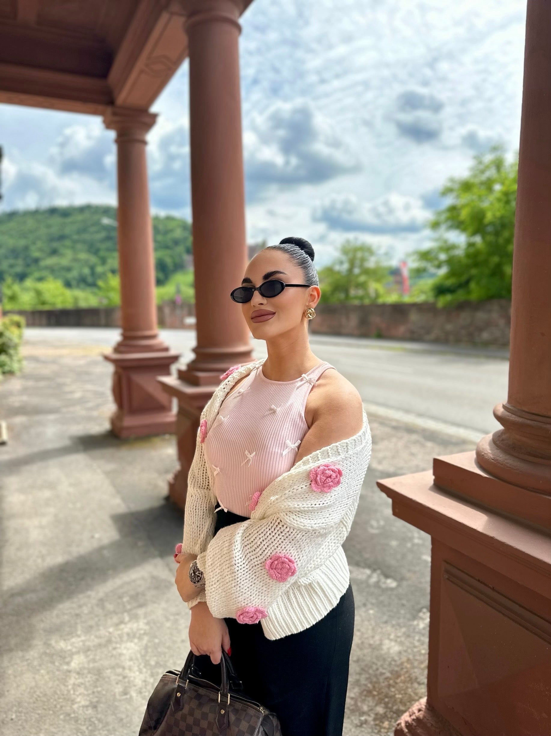 Dieser Cardigan ist genau das, was Du für Sommerabende brauchst: leicht, superweich und unglaublich bequem. Das stylische Design trifft auf elegante Details – besonders die zarten 3D-Rosen machen ihn zu einem echten Eyecatcher.