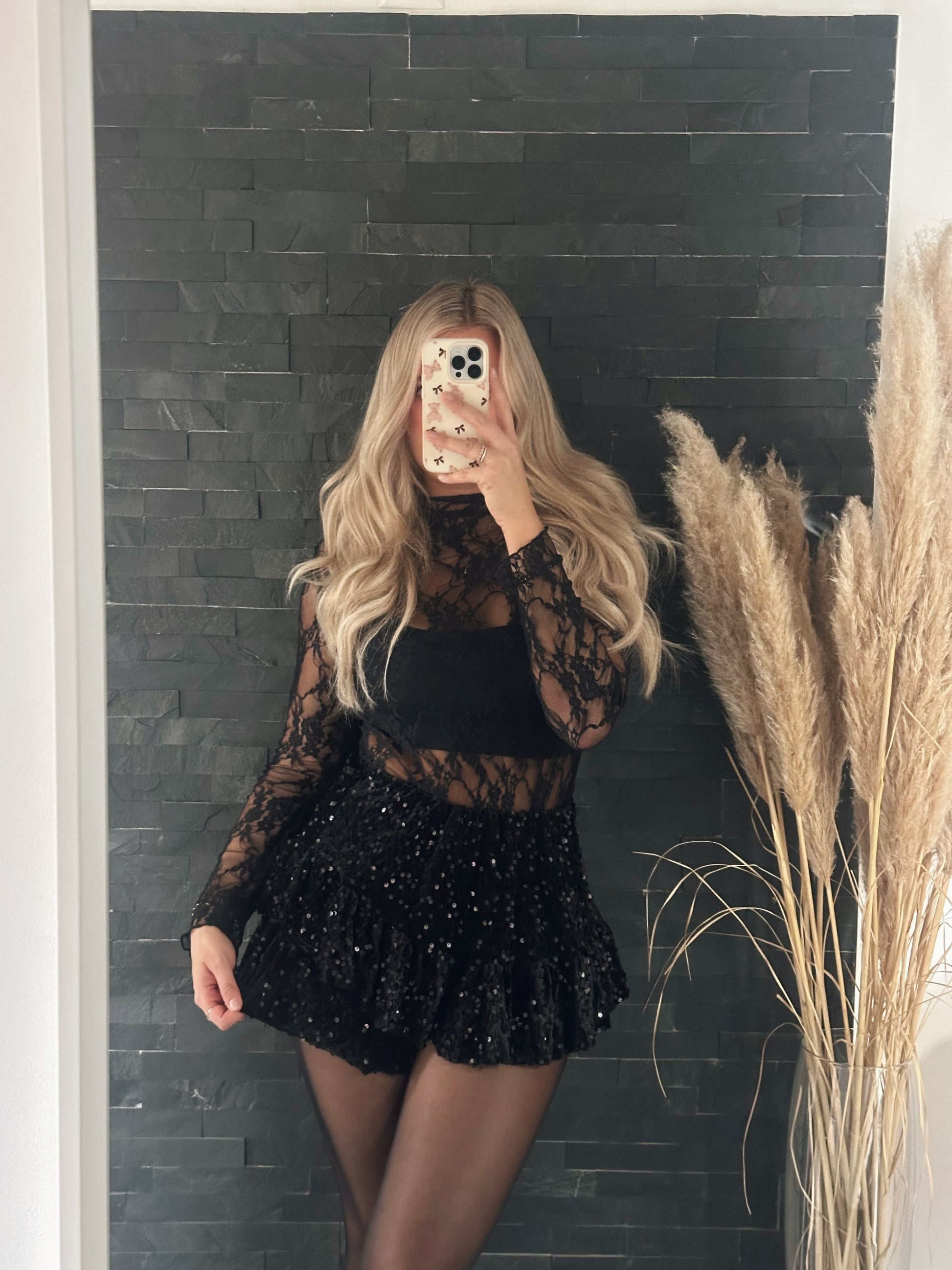Samtige Volantshorts mit funkelnden Pailletten – die perfekten Partyshorts.