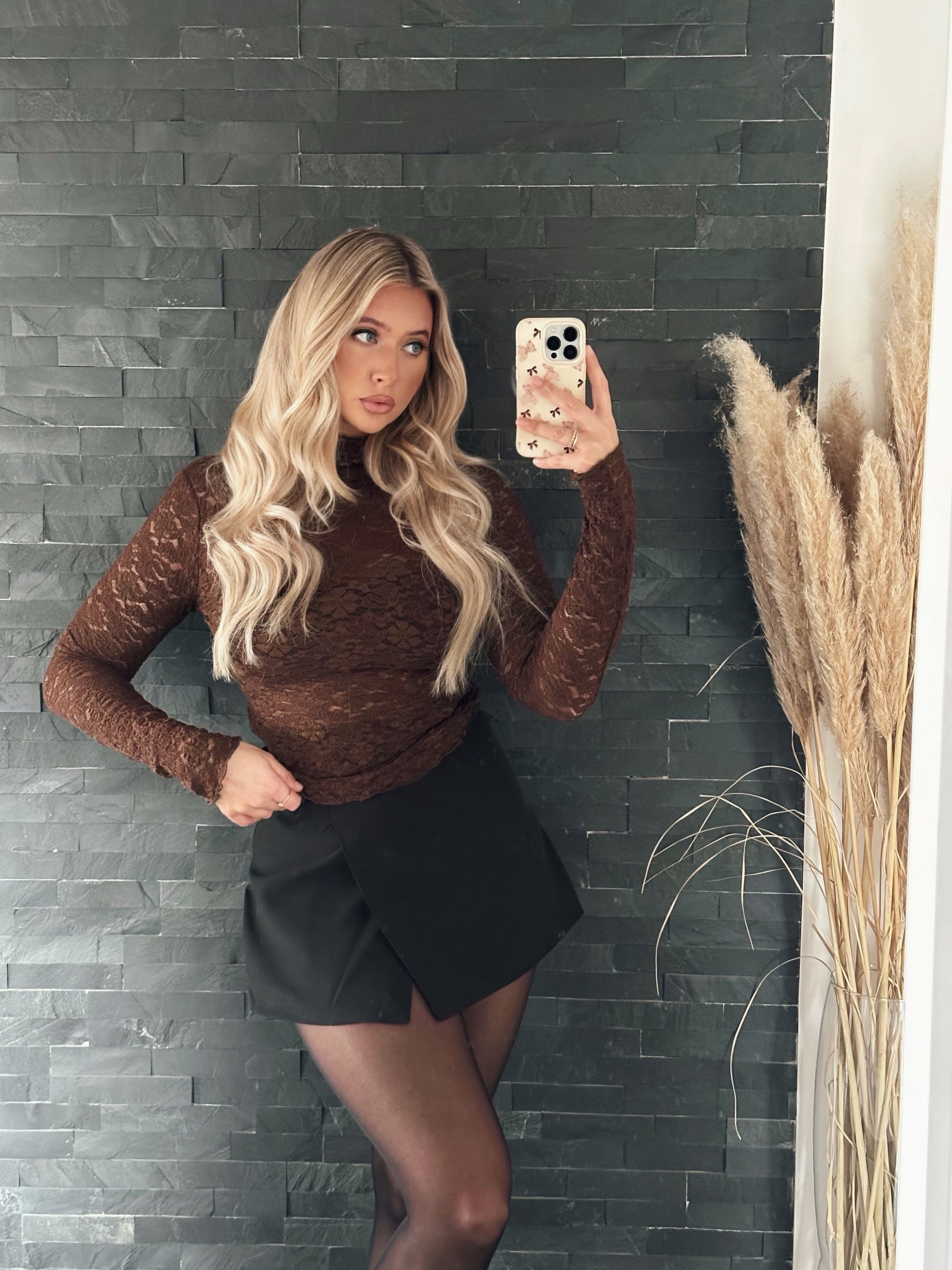 Das Spitzenoberteil in der Trendfarbe Braun ist feminin, elegant und perfekt für besondere Outfits. Die elastische Spitze schmiegt sich weich an und zaubert eine wunderschöne Silhouette.