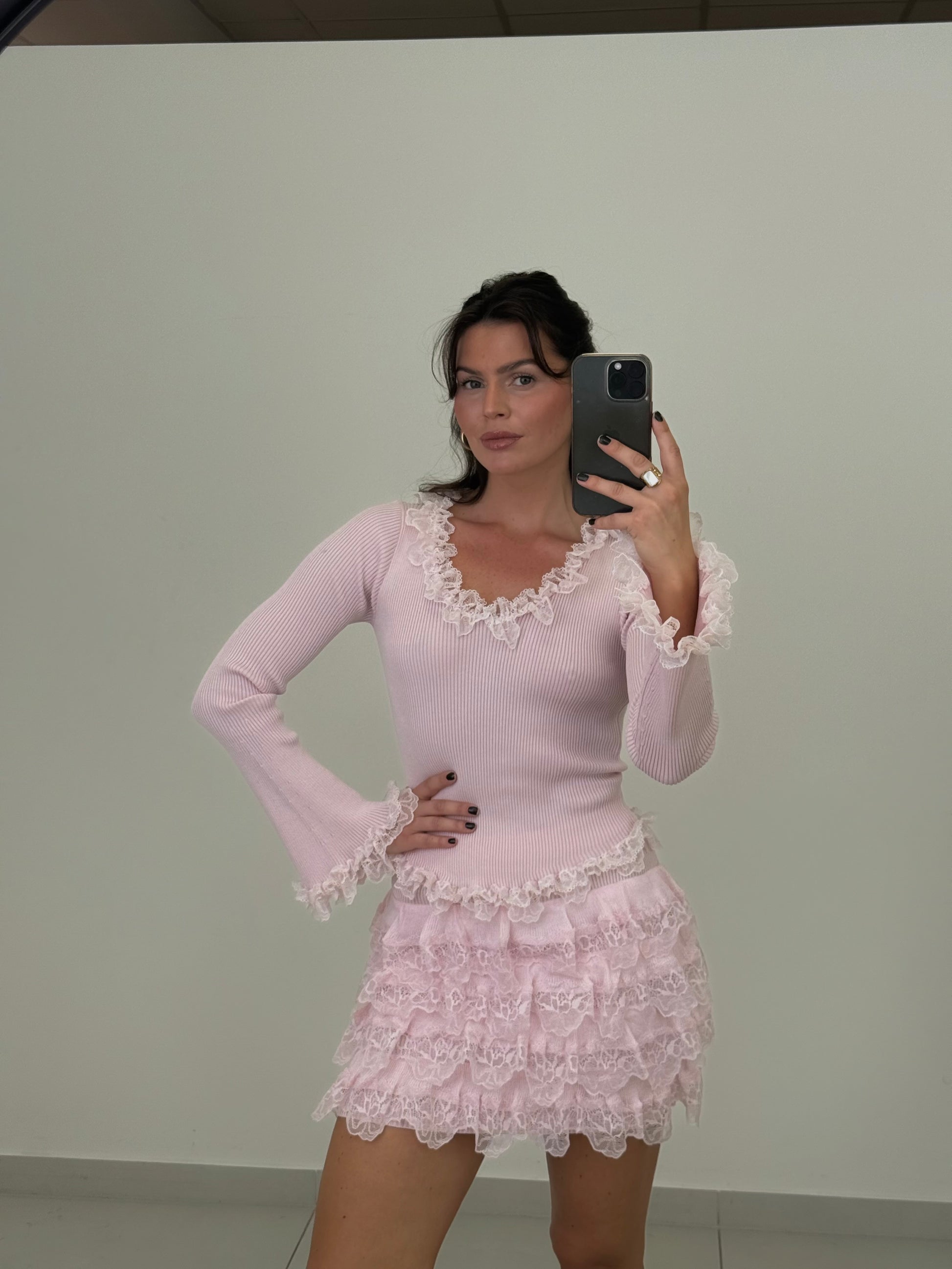 Romantischer Rock mit Spitzenrüsche – weich, feminin und perfekt zu unserem Lace Love Oberteil als Set.