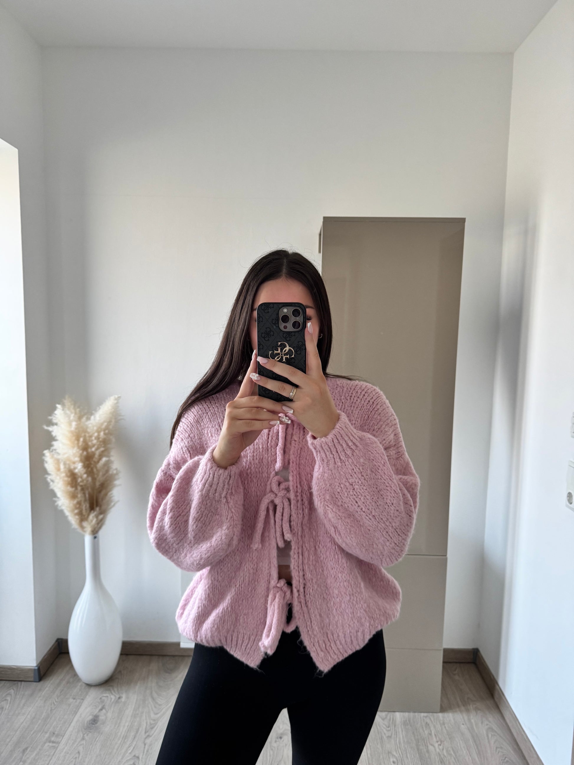 Unser bezaubernder rosa Cardigan mit Schleife ist der perfekte Begleiter für jede Jahreszeit! Hergestellt aus super weichem Material, bietet er nicht nur einen schickes Aussehen, sondern auch höchsten Komfort. Ideal für sommerliche Abende oder als stilvolles Layering-Piece für kühlere Tage. Ein Must-Have für deine Garderobe!