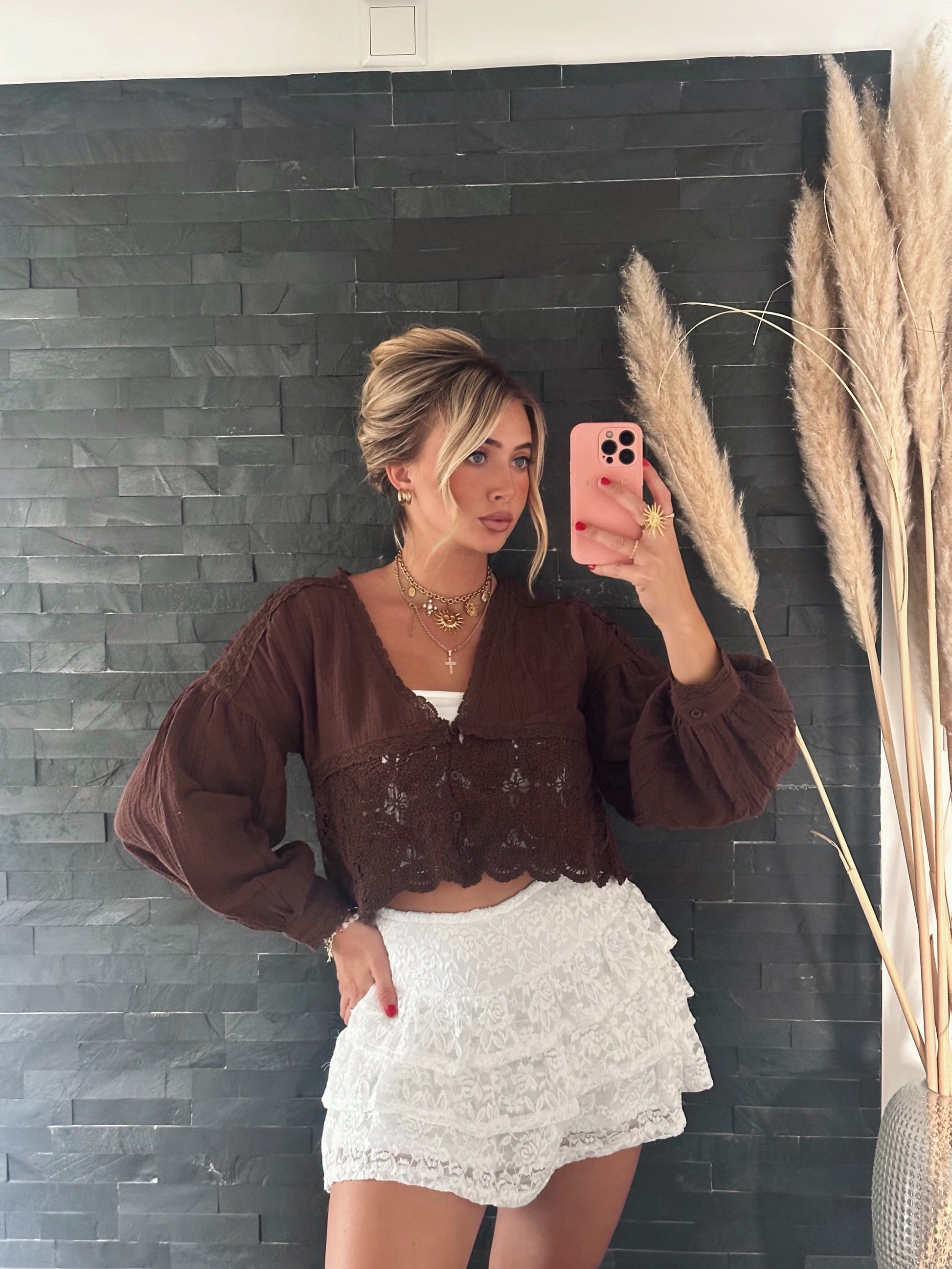 • Musselin Häkelbluse in Braun