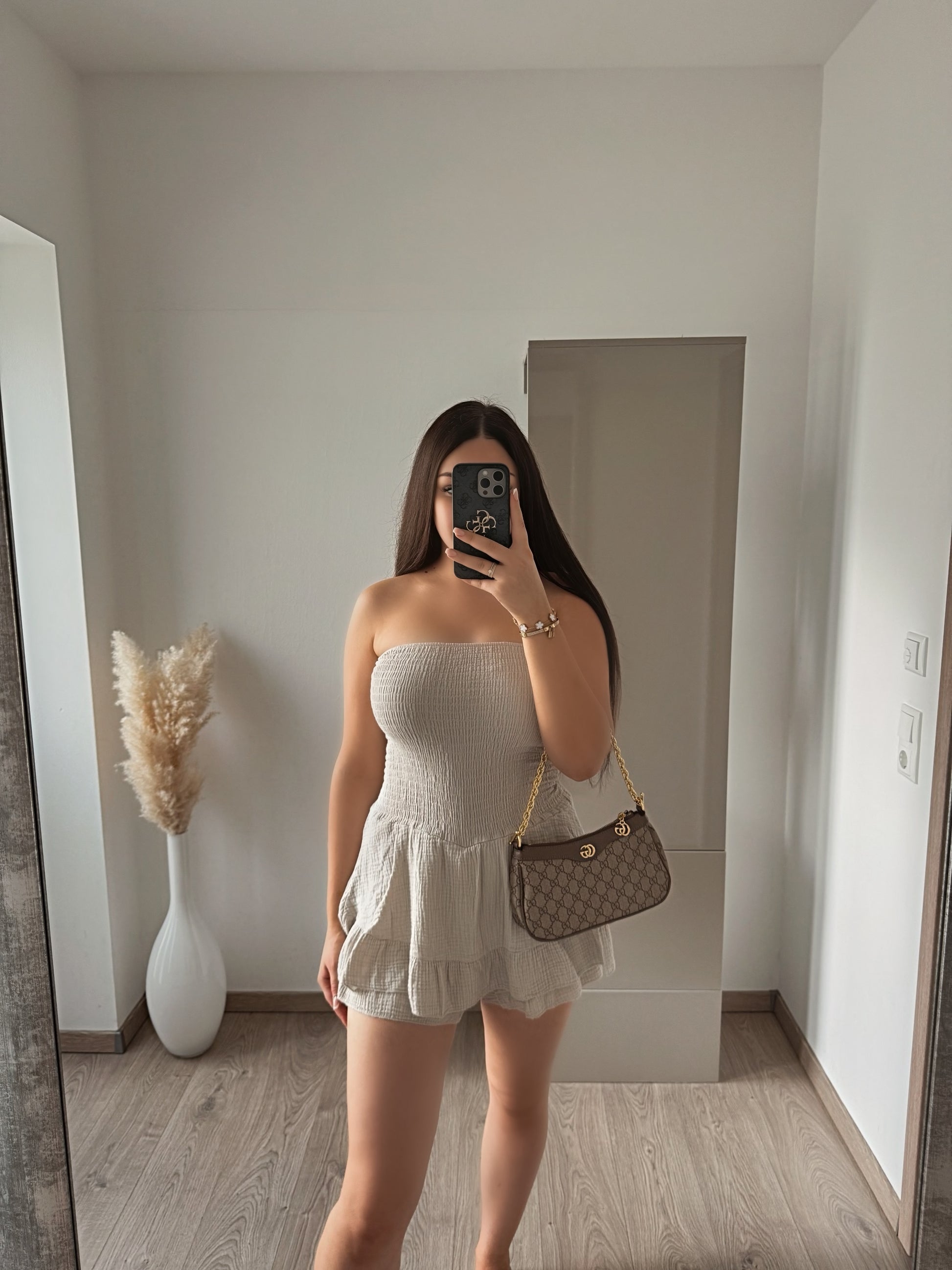 Entdecke den perfekten Sommer-Jumpsuit aus luftigem Musselin! Das smockartige, schulterfreie Oberteil sorgt für einen sicheren Sitz, während die doppellagigen Rüschen am Shorts-Bereich dem Look eine feminine und verspielte Note verleihen. Ideal für Strand, Urlaub oder entspannte Sommertage.