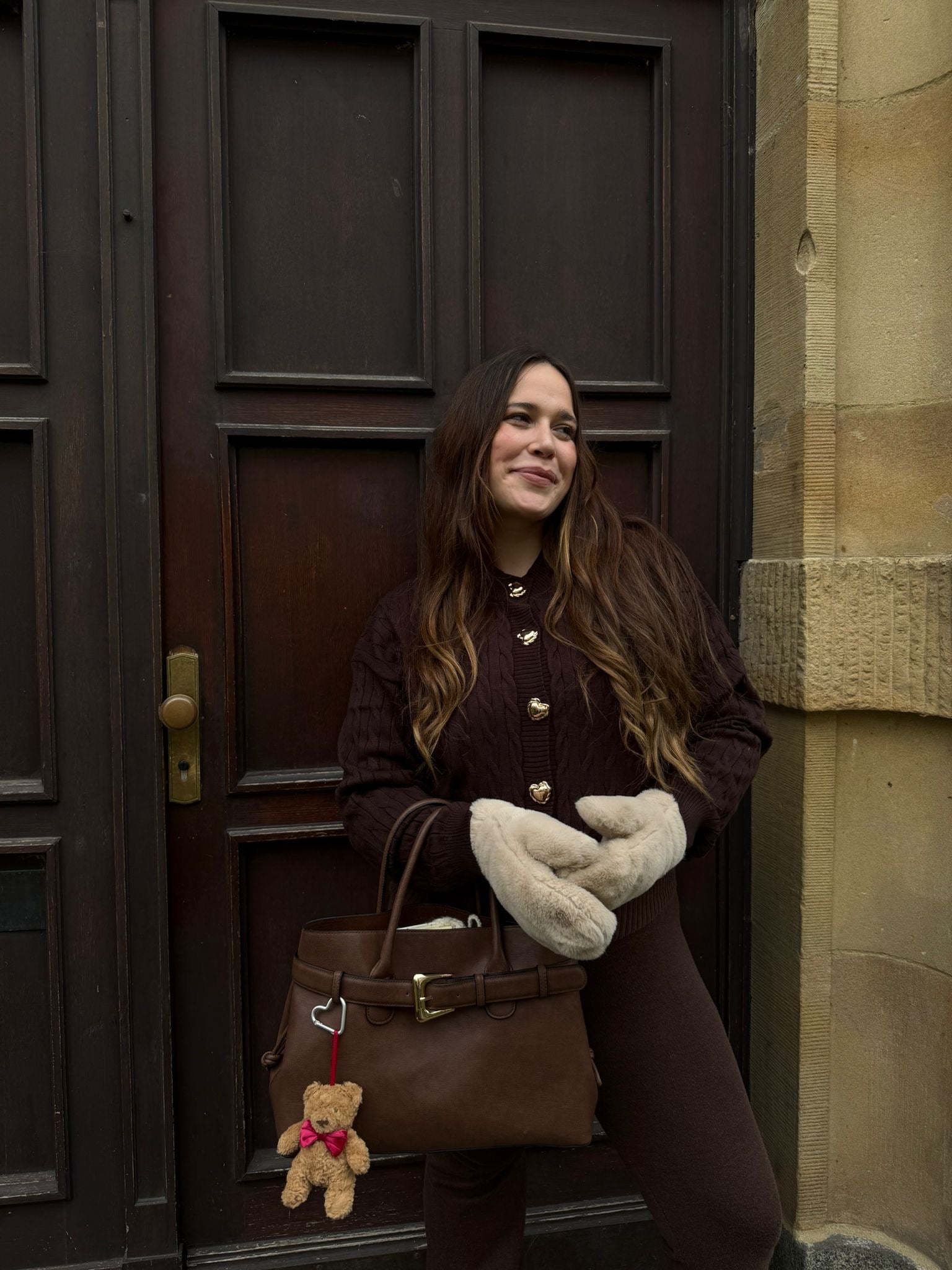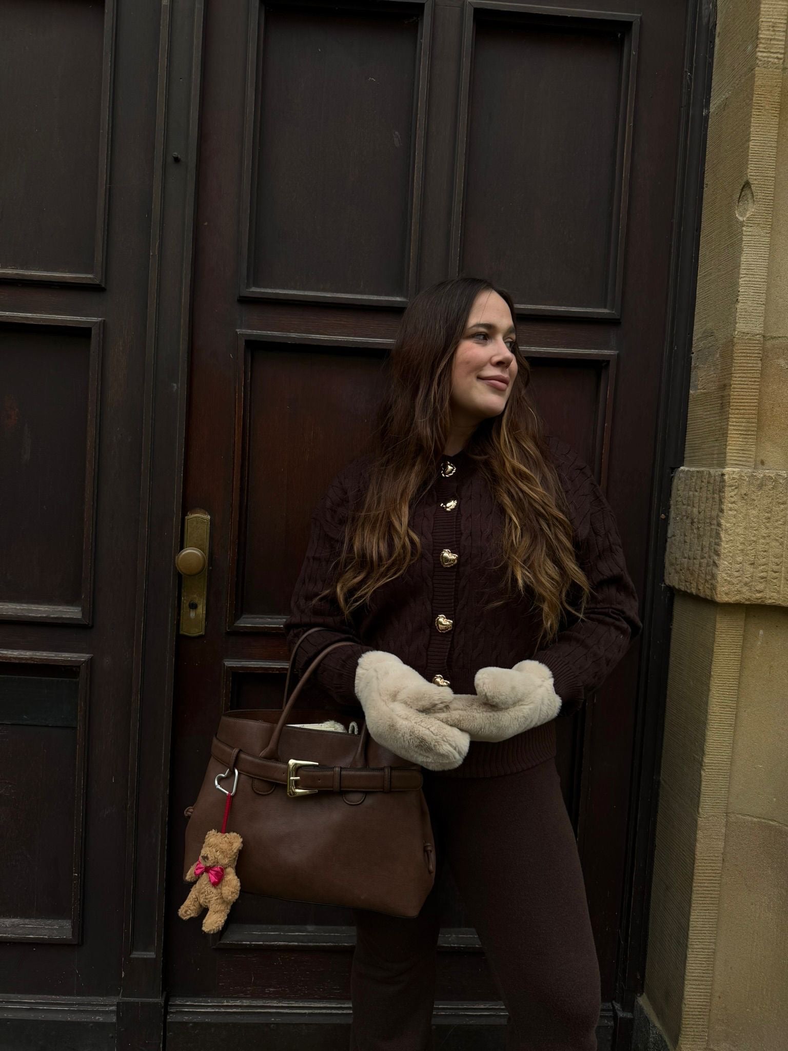 STRICKCARDIGAN CLASSIC GOLD ZOPFSTRICK SCHOKO