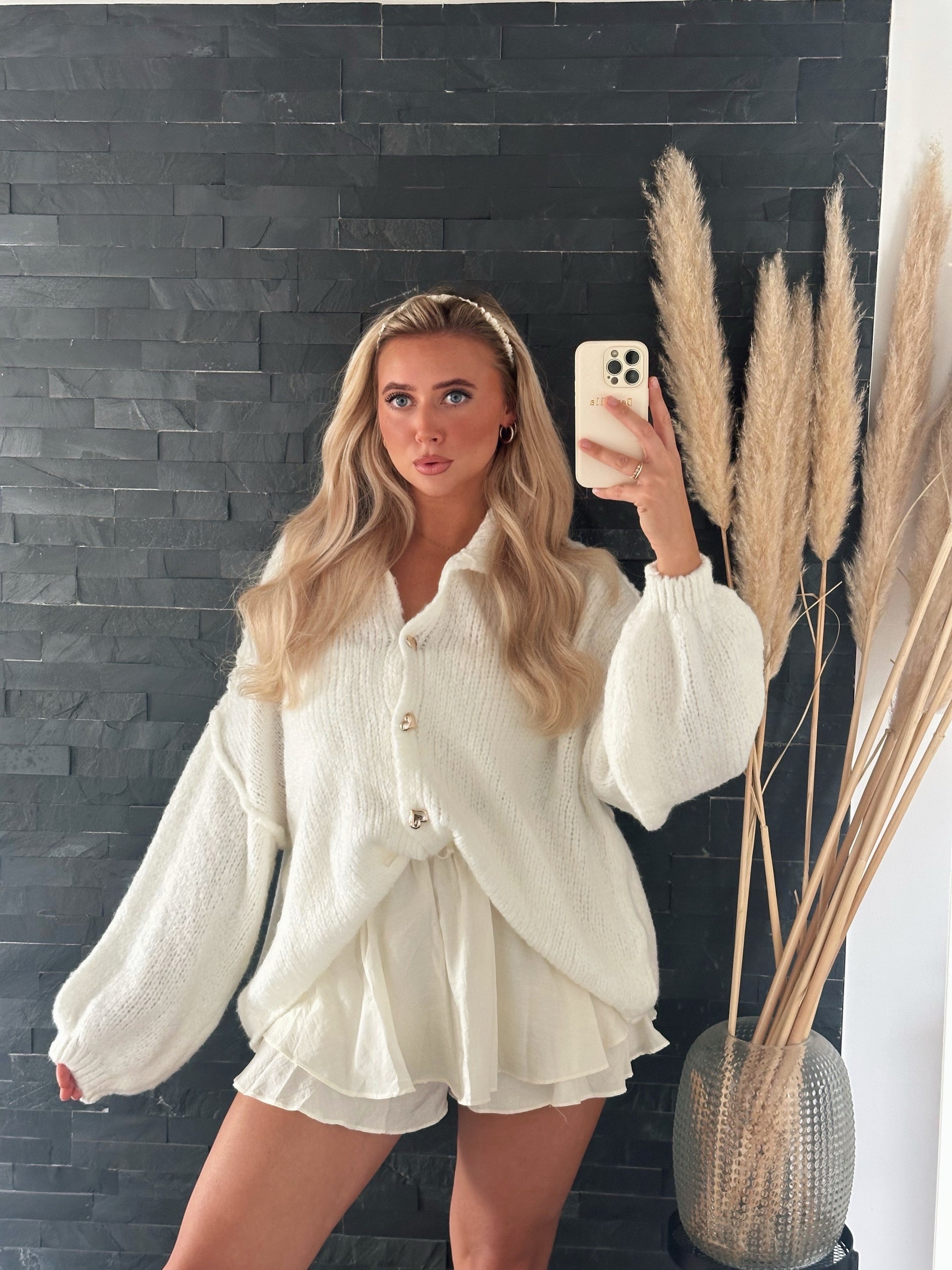Entdecke die Oversize-Strickjacke „Amalfi Love“. Dank ihrer Herzknöpfe nicht nur romantisch, sondern auch super bequem. Ein eleganter Klassiker in Cremeweiß – inspiriert vom italienischen Stilgefühl.