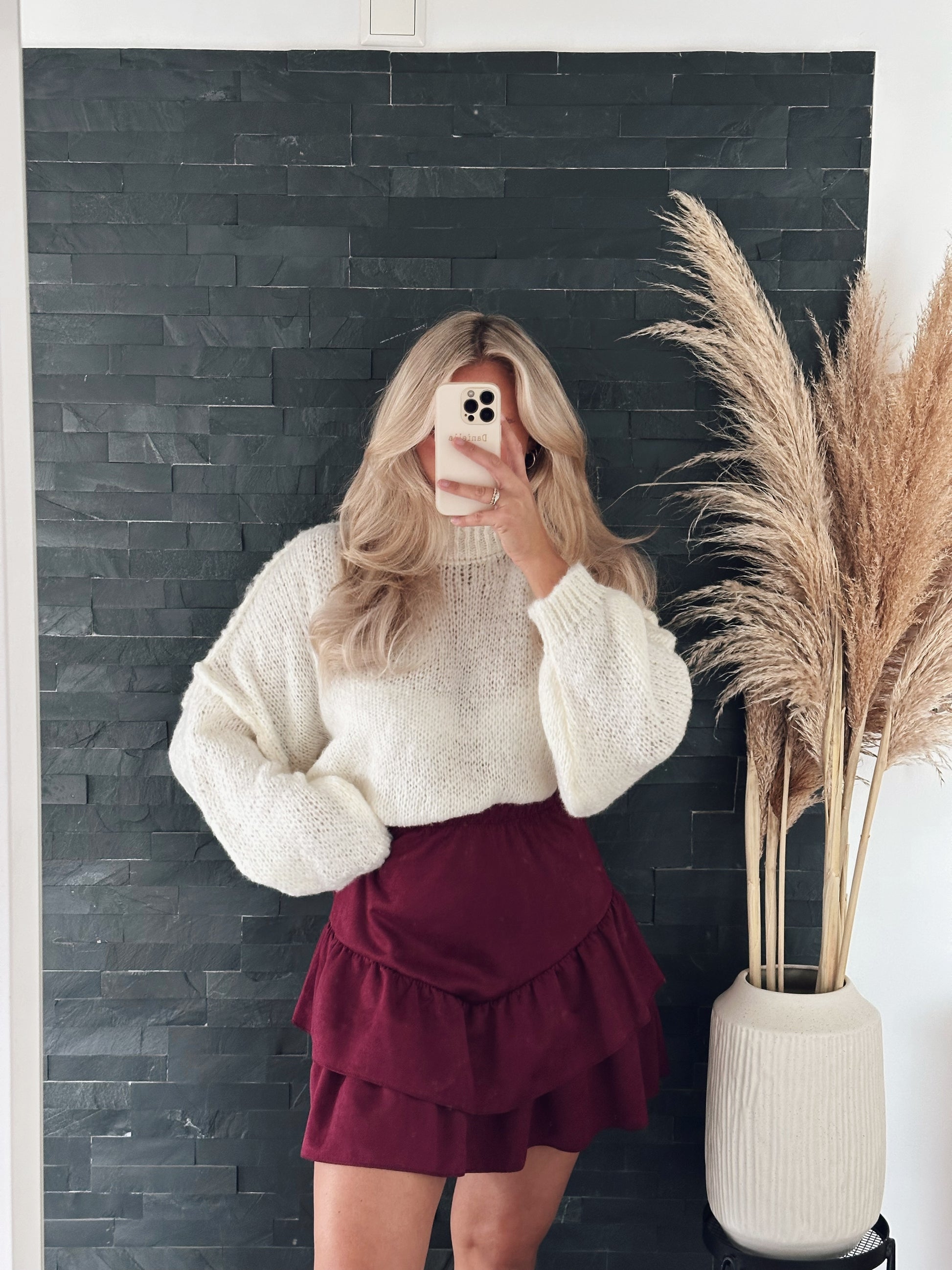 Entdecke den Wildlederrock Volant Dream in Bordeaux– ein femininer Wildleder-Minirock mit verspielten Rüschen und elastischem Bund für besten Tragekomfort. Perfekt für lässige Freizeit-Looks oder elegante Abend-Outfits.
